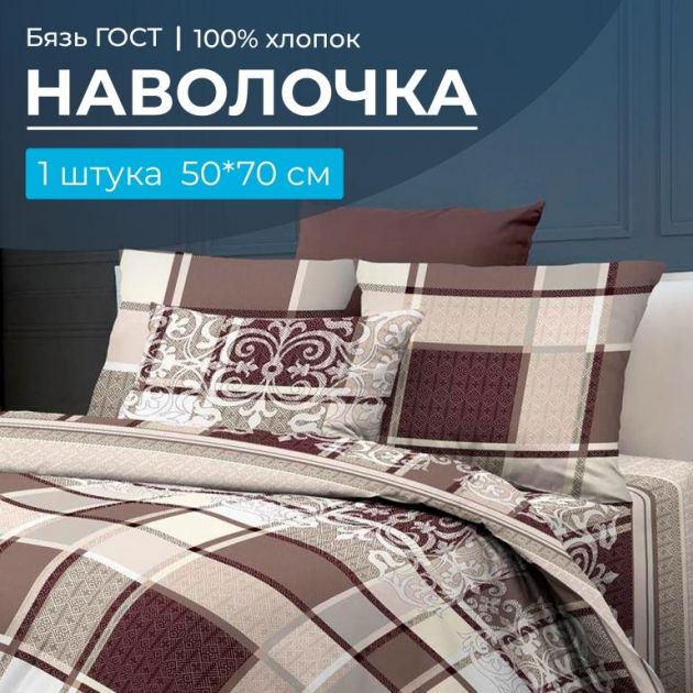 Наволочка 50*70 см, бязь ГОСТ, на клапане (Лестер, бежевый)