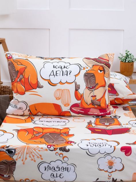 Наволочка 50*70 см, бязь "Комфорт", на пуговицах, детская расцветка (Капибара)