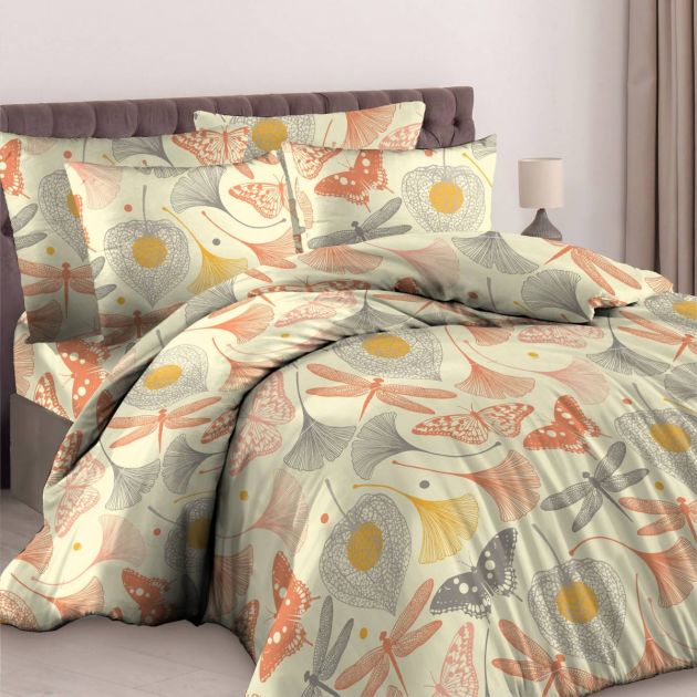 Наволочка 50*70 см, бязь "Комфорт", на пуговицах (Летняя феерия, бежевый)