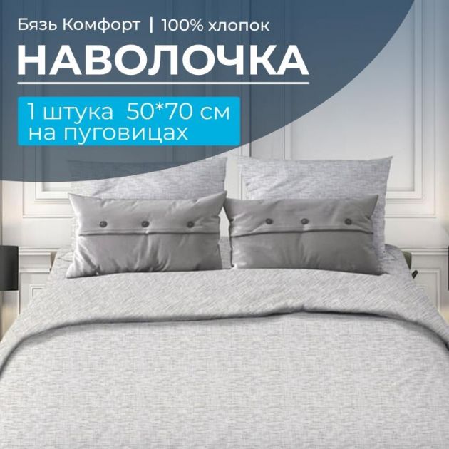 Наволочка 50*70 см, бязь "Комфорт", на пуговицах (Натурель, светло-серый)