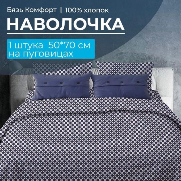 Наволочка 50*70 см, бязь "Комфорт", на пуговицах (Виши, темно-синий)