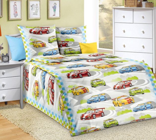 Наволочка 50*70 см, бязь "Люкс", детская расцветка (Гонки, серый)