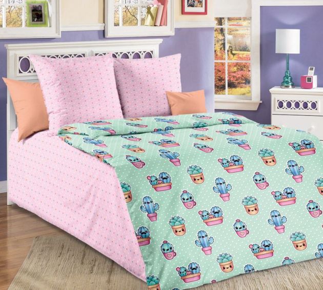 Наволочка 50*70 см, бязь "Люкс", детская расцветка (Кактусы (компаньон))