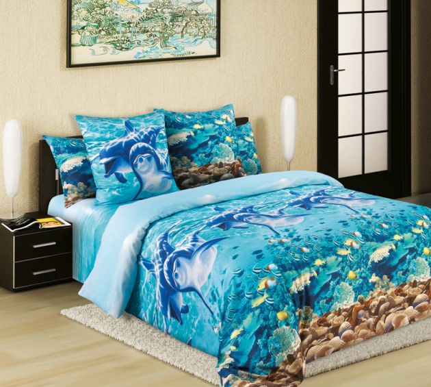 Наволочка 50*70 см, бязь "Люкс", на клапане (Дельфины 3 D)