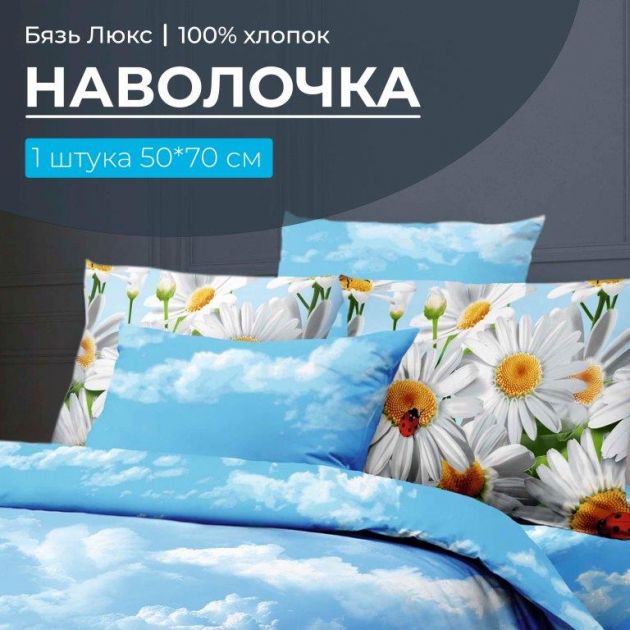 Наволочка 50*70 см, бязь "Люкс", на клапане (Воздушные ромашки)