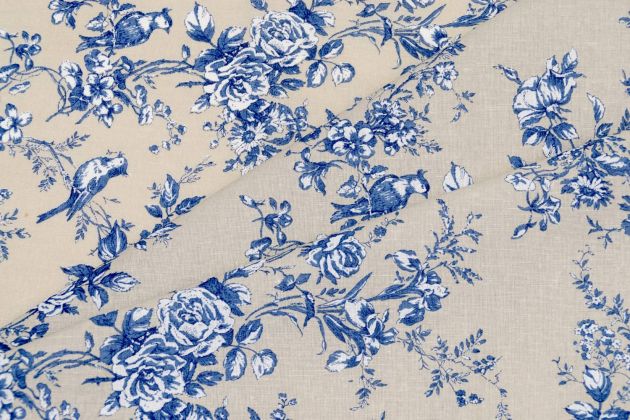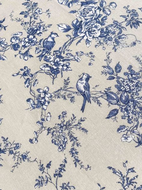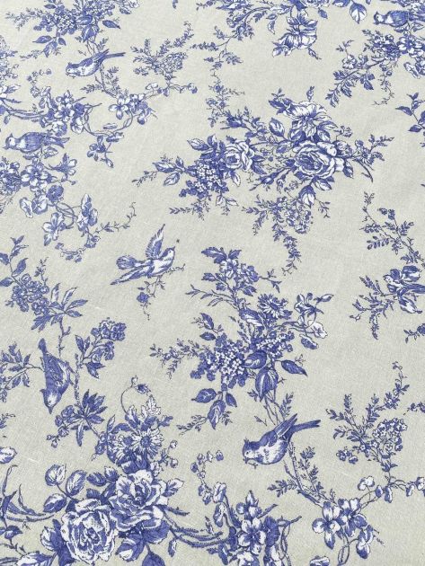 Наволочка 50*70 см на клапане, набивная полульняная ткань (Певчие птицы)