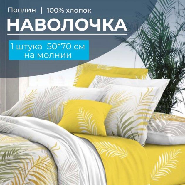Наволочка 50*70 см, на молнии, поплин (Папоротник (основа))