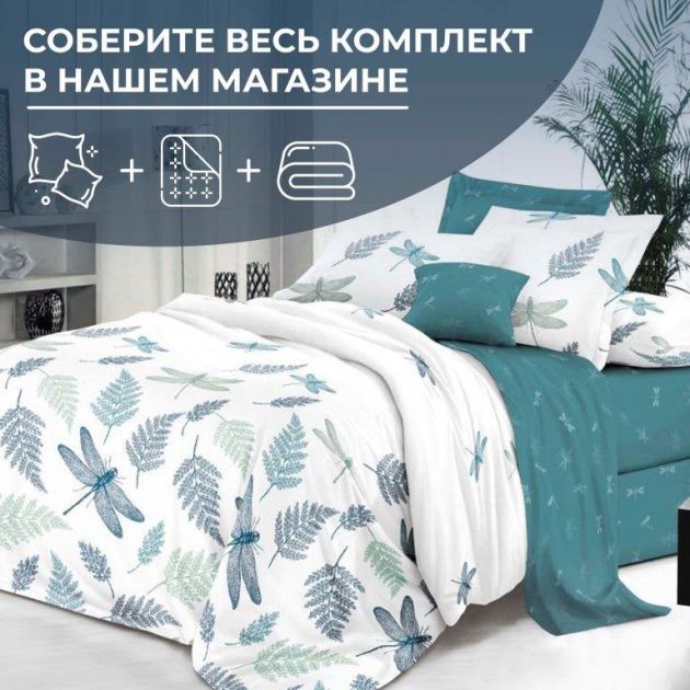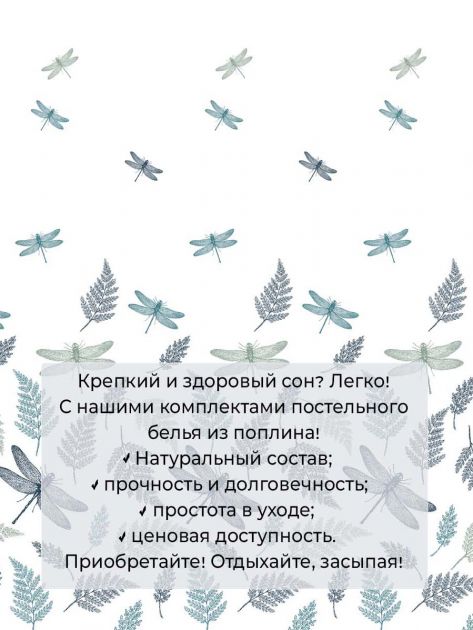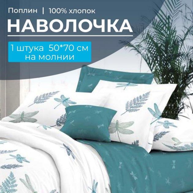Наволочка 50*70 см, на молнии, поплин (Стрекоза (основа))