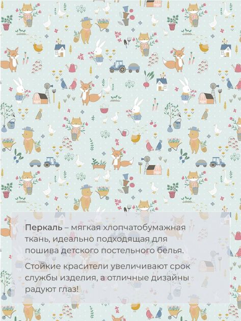Наволочка 50*70 см, перкаль, детская расцветка (Ферма)