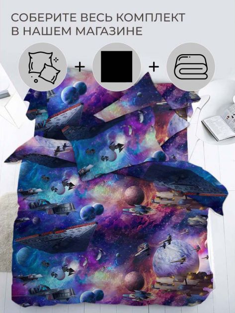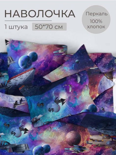 Наволочка 50*70 см, перкаль, детская расцветка (Космос 3 D)