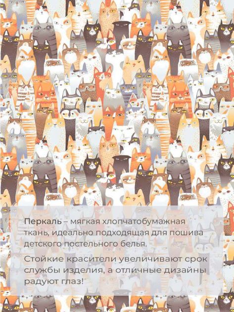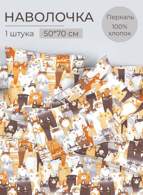 Наволочка 50*70 см, перкаль, детская расцветка (Котики)
