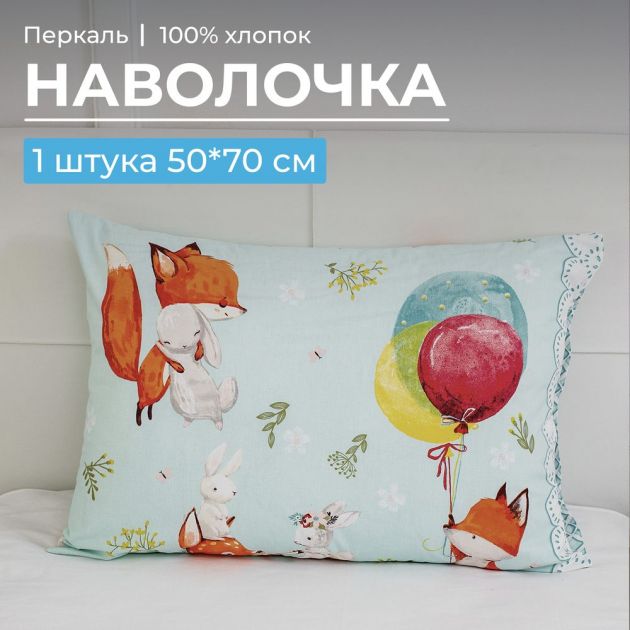Наволочка 50*70 см, перкаль, детская расцветка (Лисята)