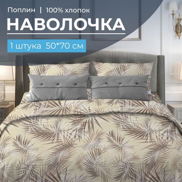 Наволочка 50*70 см, поплин (Тропикана, бежевый)
