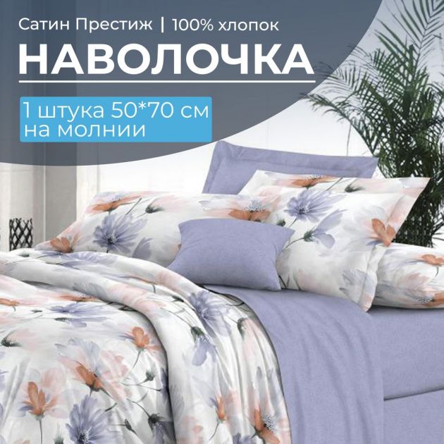 Наволочка (1 штука) из сатина "Престиж" размером 50x70 см на молнии, плотностью ткани 115 г/м2. Сатин "Престиж" - это ткань из 100% хлопка, с благородным блеском, который придает изделиям определенный шик, а нежная и гладкая поверхность не оставит никого равнодушным. Постельное белье из сатина служит долго, так как ткань почти не изнашивается (не вытягивается, не деформируется), оно гипоаллергенное, мало сминаемое, обеспечивает прекрасную регулировку теплового обмена, потому отдыхать под бельем из сатина весьма приятно. Не упустите возможность приобрести наш комплект наволочек из сатина "Престиж" и погрузиться в мир здорового и комфортного сна каждую ночь! Размер наволочки