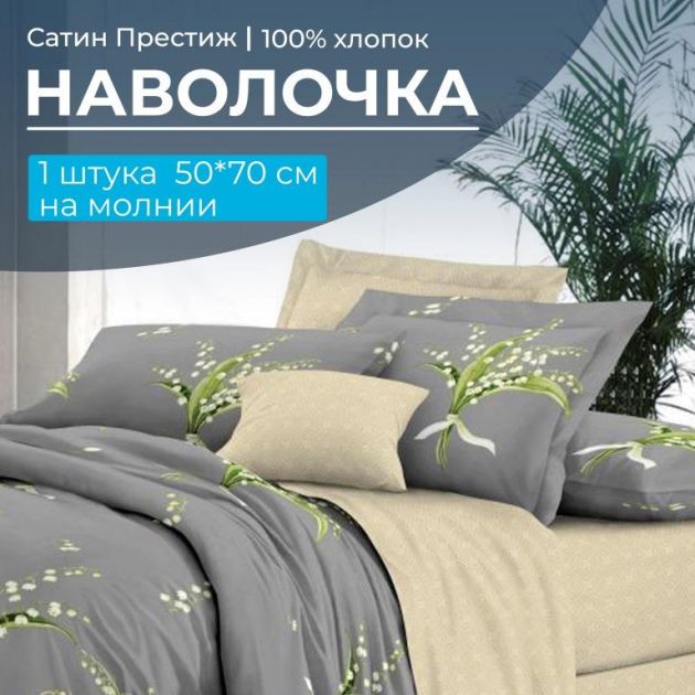 Наволочка 50*70 см, сатин Престиж", на молнии (Ландыш (основа))