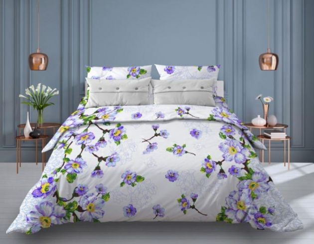 Наволочка 60*60 см, бязь "Комфорт" (Сакура, голубой)