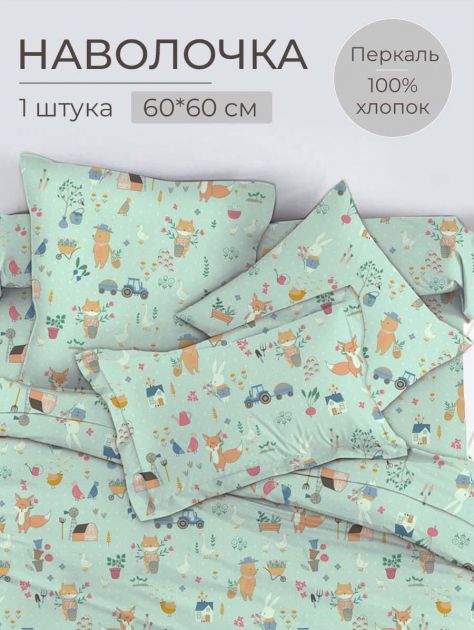 Наволочка 60*60 см, перкаль, детская расцветка (Ферма)