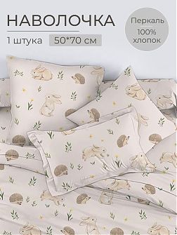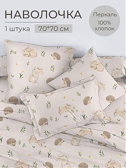 Наволочка 60*60 см, перкаль, детская расцветка (Лесные друзья)