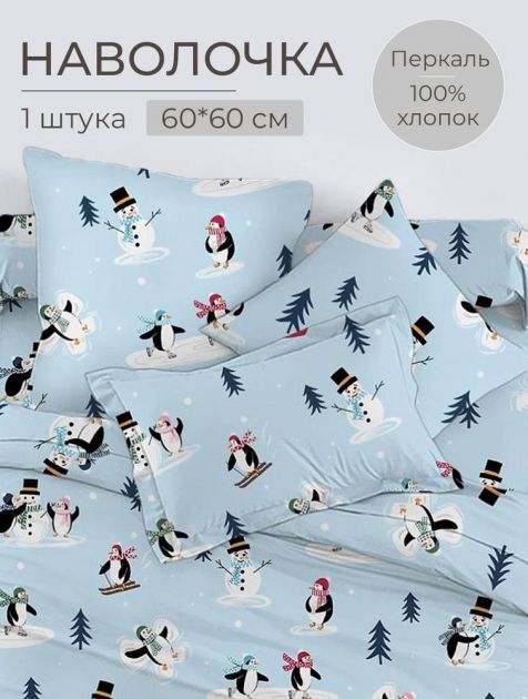 Наволочка 60*60 см, перкаль, детская расцветка (Пингвинята)