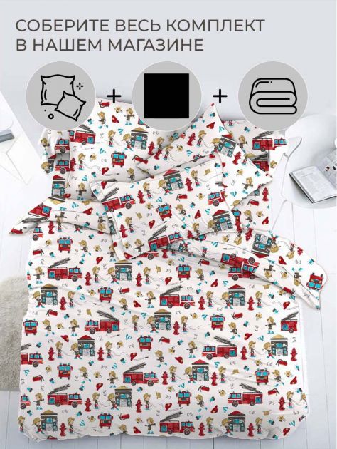 Наволочка 60*60 см, перкаль, детская расцветка (Пожарники)