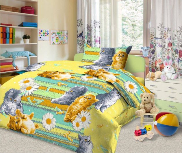 Наволочка 70*70 см, бязь "Комфорт", детская расцветка (Кис-Кис, желтый)
