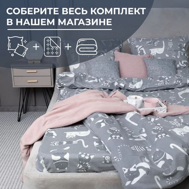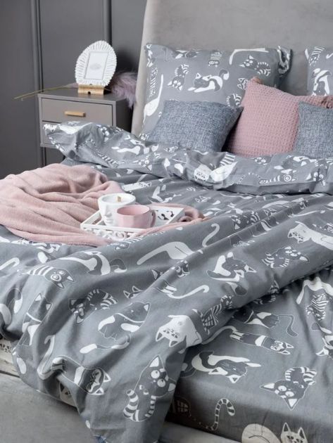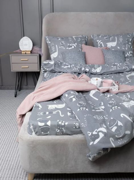 Наволочка 70*70 см, бязь "Комфорт" (Кошкин дом, тёмно-серый)