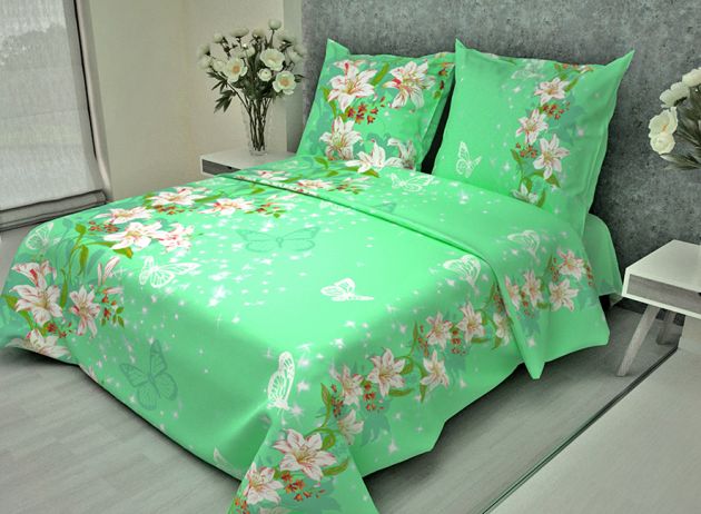 Наволочка 70*70 см, бязь "Комфорт" (Лилии, зеленый)