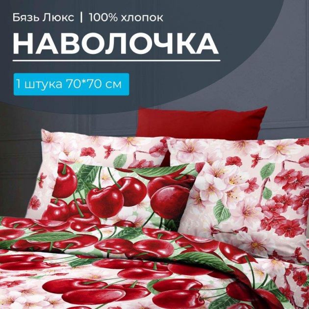 Наволочка 70*70 см, бязь "Люкс" (220) (Спелая вишня)