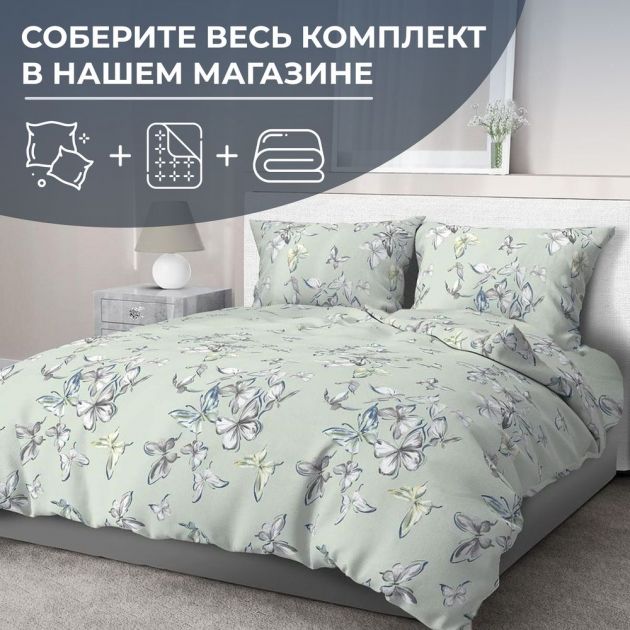 Наволочка 70*70 см, перкаль (Астерия, мятный)