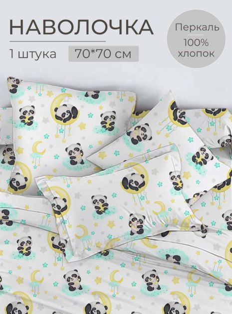 Наволочка 70*70 см, перкаль, детская расцветка (Панда Лёлик)