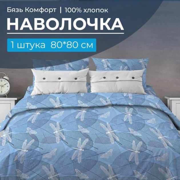Наволочка 80*80 см, бязь "Комфорт" (Стрекозы, голубой)