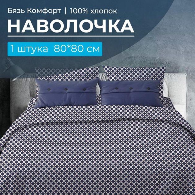 Наволочка 80*80 см, бязь "Комфорт" (Виши, темно-синий)