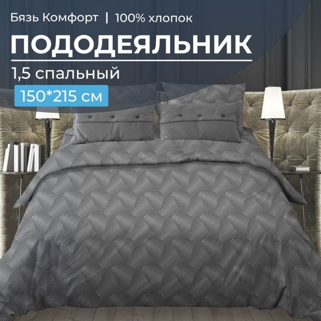 Пододеяльник 1,5-спальный, бязь "Комфорт" (220) (Иллюзия, серый)