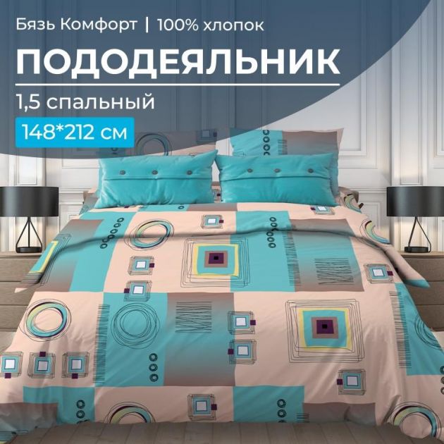 1,5-спальный пододеяльник из бязи "Комфорт" размером 148*212 см с прорезью на боковом шве, плотностью ткани 119 г/м2 из 100% хлопка, обладает высоким качеством, что гарантирует Вам долговечность и удобство использования. Хлопковый пододеяльник обеспечит приятную прохладу летом и тепло зимой, благодаря своей дышащей и гипоаллергенной структуре, легко стирается и сохраняет свою форму и качество даже после многих стирок. С нашим хлопковым пододеяльником Вы выбираете качество и комфорт для своего сна! А огромный выбор дизайнов можете Вам создать свой уникальный комплект постельного белья. Наши изделия произведены в Ивановской области, имеют сертификацию качества "ГОСТ 31307-2005", а также зарегистрированы в государственной системе маркировки "Честный знак". Размер пододеяльника