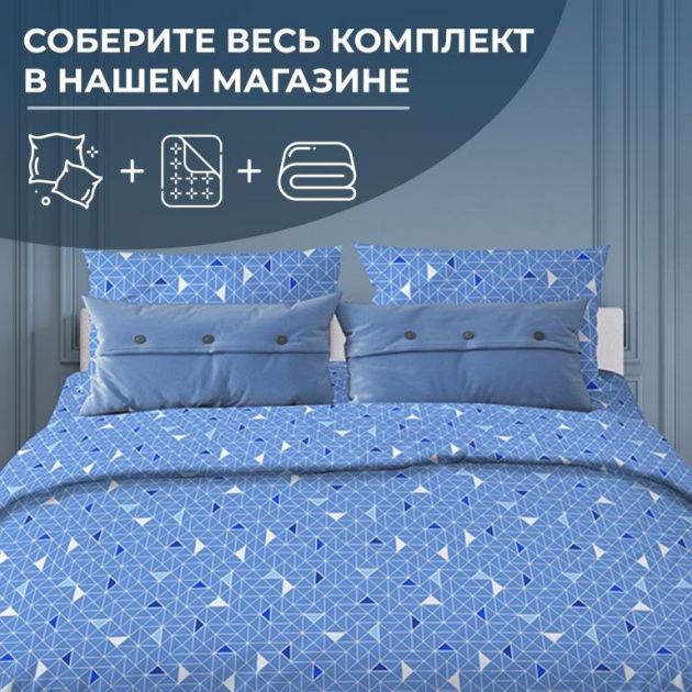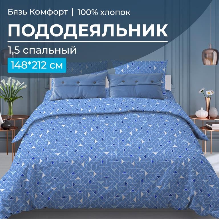 Пододеяльник 1,5-спальный, бязь "Комфорт" (Треугольники, светло-синий)