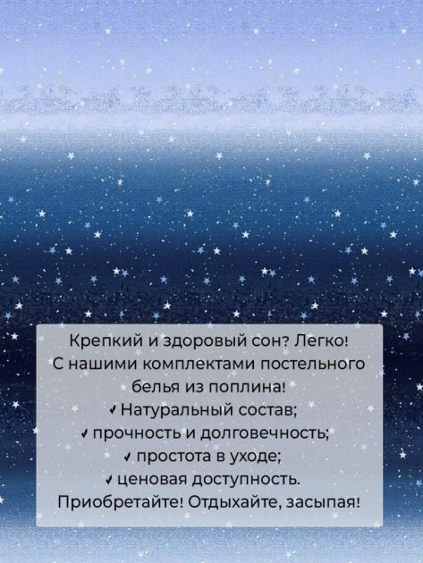 Пододеяльник 1,5-спальный на молнии, поплин (Ночное небо (основа))