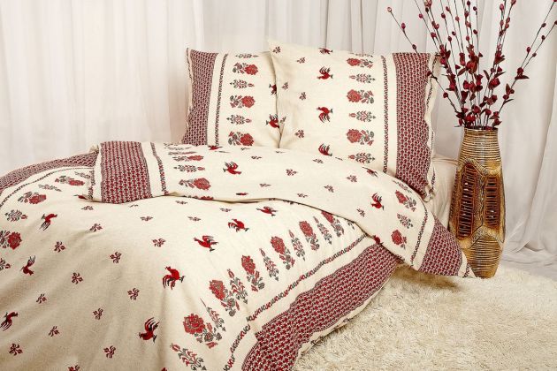 Пододеяльник 1,5-спальный, набивная полульняная ткань (Русские узоры)