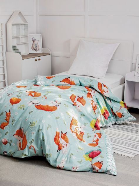 Пододеяльник 1,5-спальный, перкаль, детская расцветка (Лисята)