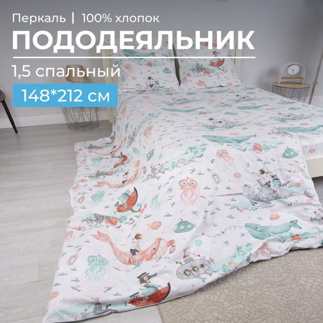 Пододеяльник 1,5-спальный, перкаль, детская расцветка (Морячок)