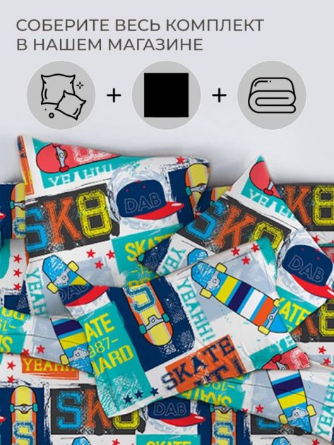 Пододеяльник 1,5-спальный, перкаль, детская расцветка (Скейт)