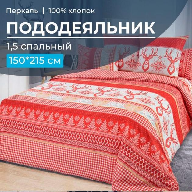 Пододеяльник 1,5-спальный, перкаль (Лапландия, красный)