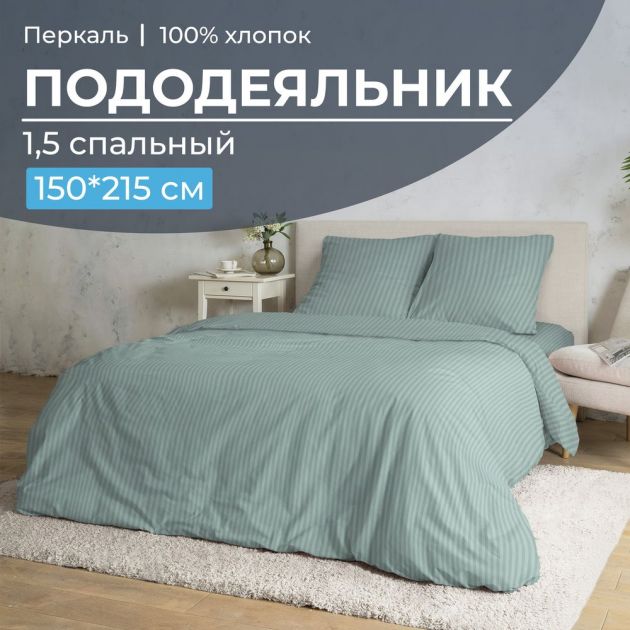 Пододеяльник 1,5-спальный, перкаль (Лунная соната, шалфей)