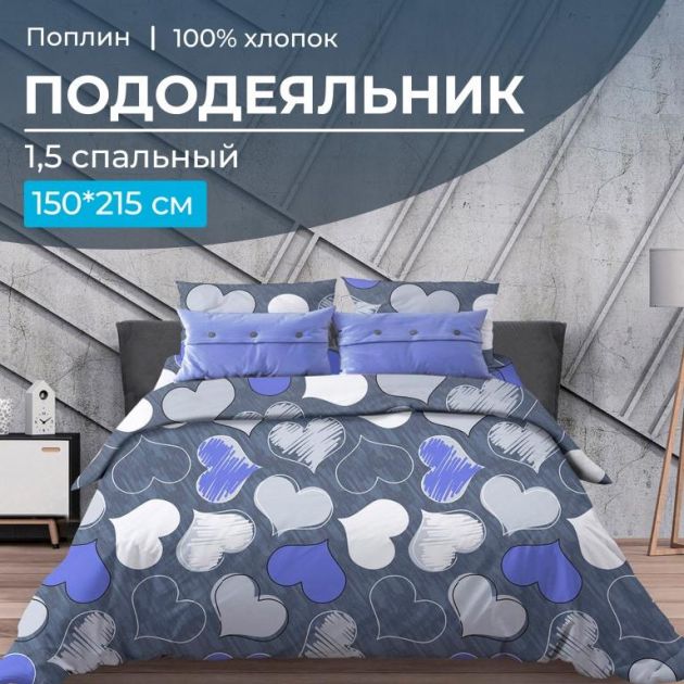 Пододеяльник 1,5-спальный, поплин (Романтика, синий)