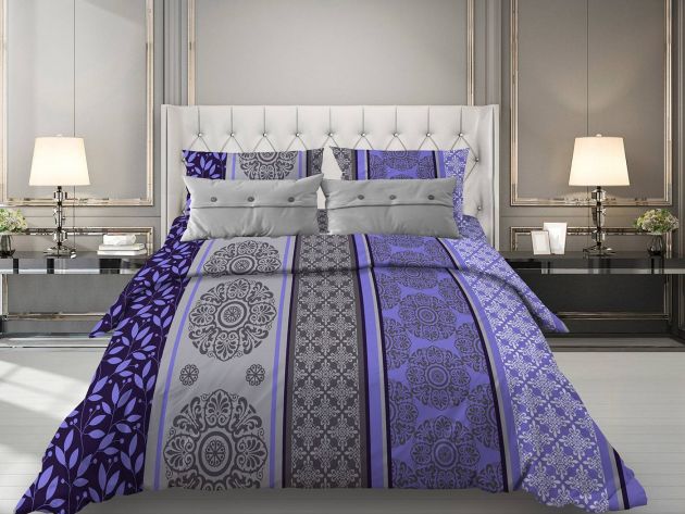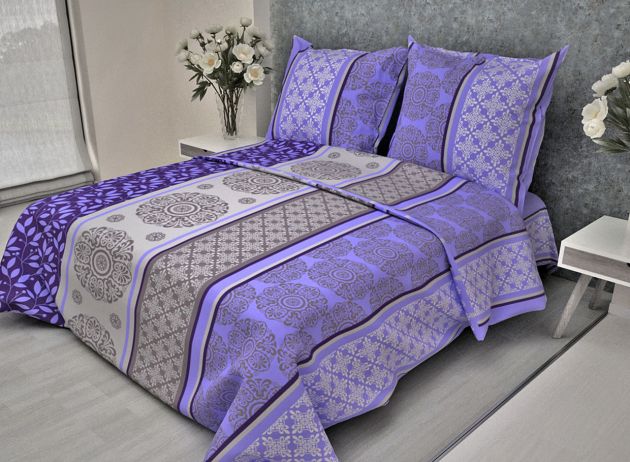 Пододеяльник 1,5-спальный, с вырезом "ромб", бязь "Комфорт" (Ажур, фиолетовый)