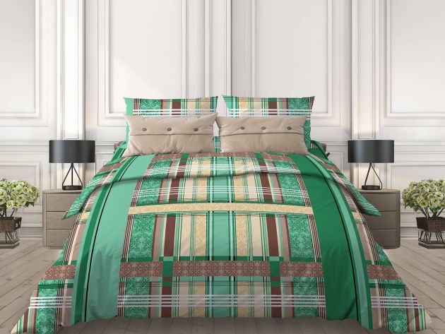 Пододеяльник 1,5-спальный, с вырезом "ромб", бязь "Комфорт" (Геометрия, зеленый)