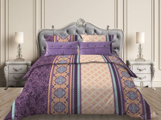 Пододеяльник 1,5-спальный, с вырезом "ромб", бязь "Комфорт" (Калейдоскоп, сиреневый)