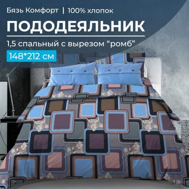 Пододеяльник 1,5-спальный из бязи "Комфорт" размером 148*212 см, плотность ткани 119 г/м2, вход в пододеяльник выполнен в виде ромба со стороной 35 см. В пододеяльник такого типа удобно заправлять одеяло. Такие пододеяльники в настоящее время редко встречаются в продаже, хотя многие покупатели их любят. Бязь "Комфорт" - ткань из 100% хлопка обладает высоким качеством, что гарантирует Вам долговечность и удобство использования. Хлопковый пододеяльник обеспечит приятную прохладу летом и тепло зимой, благодаря своей дышащей и гипоаллергенной структуре. Кроме того, наш хлопковый пододеяльник легко стирается и сохраняет свою форму и качество даже после многих стирок. Наши изделия произведены в Ивановской области, имеют сертификацию качества "ГОСТ 31307-2005", а также зарегистрированы в государственной системе маркировки "Честный знак". С нашим хлопковым пододеяльником Вы выбираете качество и комфорт для своего сна! А огромный выбор дизайнов можете Вам создать свой уникальный комплект постельного белья.