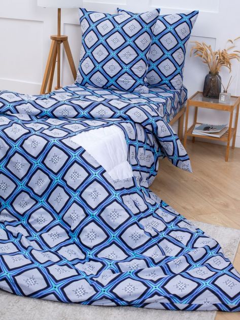 Пододеяльник 1,5-спальный из бязи "Комфорт" размером 148*212 см, плотность ткани 119 г/м2, вход в пододеяльник выполнен в виде ромба со стороной 35 см. В пододеяльник такого типа удобно заправлять одеяло. Такие пододеяльники в настоящее время редко встречаются в продаже, хотя многие покупатели их любят. Бязь "Комфорт" - ткань из 100% хлопка обладает высоким качеством, что гарантирует Вам долговечность и удобство использования. Хлопковый пододеяльник обеспечит приятную прохладу летом и тепло зимой, благодаря своей дышащей и гипоаллергенной структуре. Кроме того, наш хлопковый пододеяльник легко стирается и сохраняет свою форму и качество даже после многих стирок. Наши изделия произведены в Ивановской области, имеют сертификацию качества "ГОСТ 31307-2005", а также зарегистрированы в государственной системе маркировки "Честный знак". С нашим хлопковым пододеяльником Вы выбираете качество и комфорт для своего сна! А огромный выбор дизайнов можете Вам создать свой уникальный комплект постельного белья. Размер пододеяльника