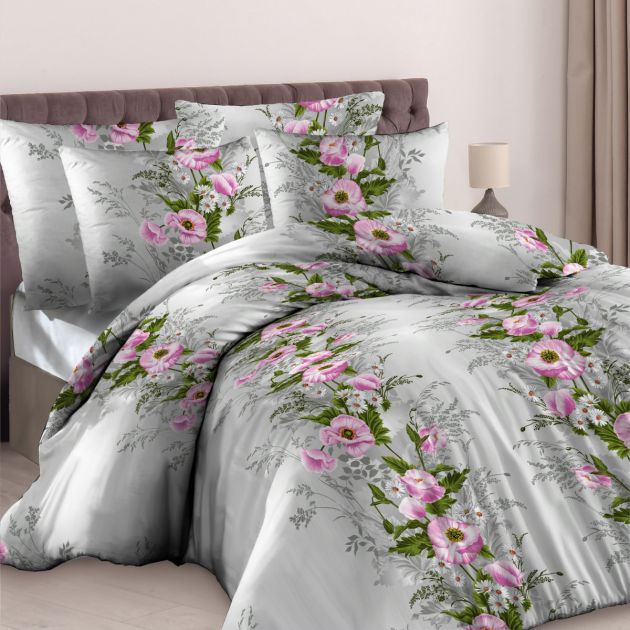 Пододеяльник 1,5-спальный, с вырезом "ромб", бязь "Комфорт" (Полевые маки, серый)