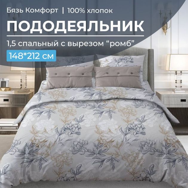 Пододеяльник 1,5-спальный, с вырезом "ромб", бязь "Комфорт" (Симфония, серо-бежевый)